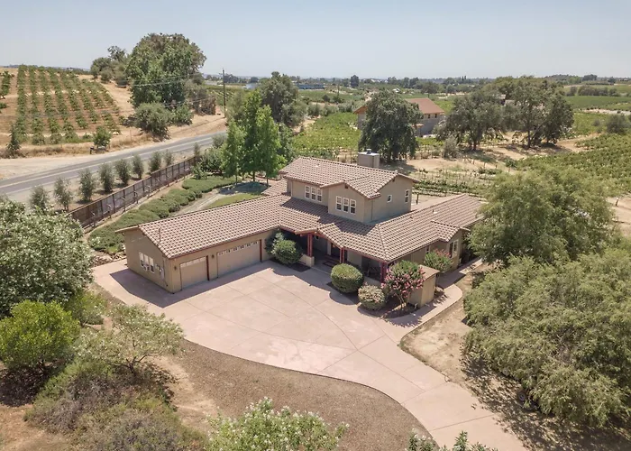 La Fraser Family Vineyard Estate Pet-Friendly Home ospita un angolo cottura attrezzato con una macchina per caffè e tè, un frigo e un forno. L'aeroporto Internazionale di Sacramento è posizionato a 90 km da questa casa vacanze.